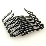 Head will turn as you sparkle your way through any crowd with this delightful pair of interlocking combs. Each of these glossy-black combs features five prongs that are glittering with more than 70 pave-set diamond-like crystals. Many more tiny silvery studs are scattered about to capture and reflect even more light. Meant to be worn together, the gently-curved teeth of these combs comfortably grips your hair and "lock" together to hold a glamorous French twist. Works best with medium-thickness hair. A real show stopper... whether walking down the red carpet or running errands downtown. Read more