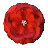 This beautiful red silk flower is stunning. This multi layered flower has a span of 3-1/2 inches. The center of the flower is adorned with five small rhinestones. The flower is attached to a strong single prong clip allowing for versatility. This flower is for baby, girls and women. Wear the flower in your hair, clipped to a jacket, purse, clothing, hat, ect. Read more